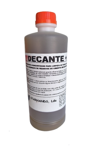 - DECANTE + destina-se à limpeza e desincrustação das camadas de cimento que aderem às betoneiras e aos moldes metálicos.